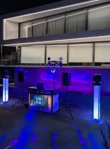 Utilizamos equipos de última generación para garantizar que la sonorización y la iluminación de tu evento sean impecables. Nuestros sistemas de sonido para eventos privados aseguran que cada detalle, desde las melodías suaves hasta las mezclas más potentes, se escuche con la mejor calidad. Y nuestra iluminación para cumpleaños y fiestas privadas no solo crea un ambiente impactante, sino que también se ajusta a la perfección a las necesidades específicas de tu evento.