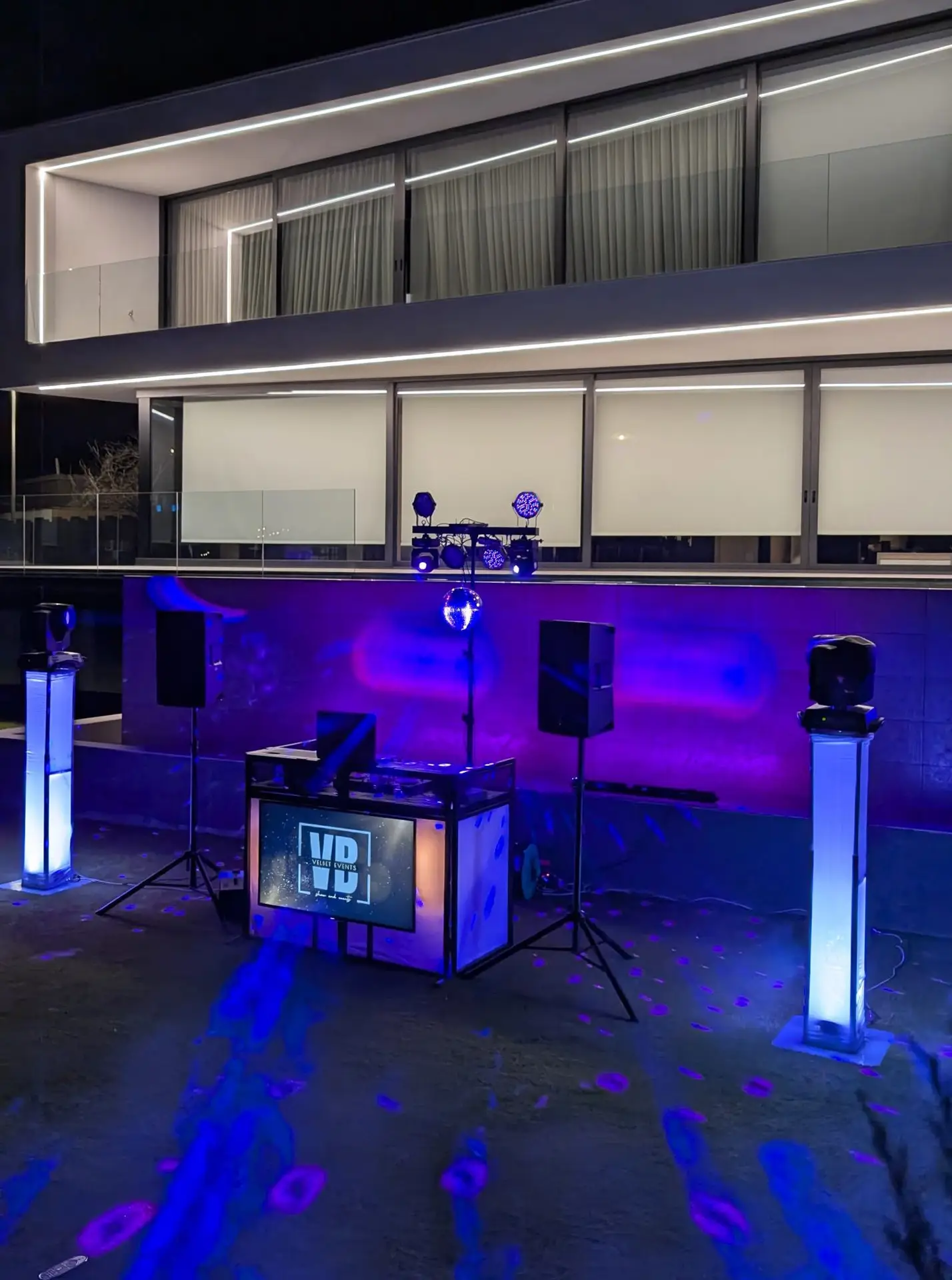 Transformamos cualquier espacio en un ambiente espectacular con nuestra iluminación profesional para eventos privados. Combinamos luces móviles y efectos visuales de alta calidad para crear atmósferas impactantes que transforman tu fiesta en un auténtico club. Con nuestras instalaciones de iluminación de vanguardia, tu fiesta será la sensación de la noche, ya sea un cumpleaños en Barcelona o una celebración privada en Girona.
